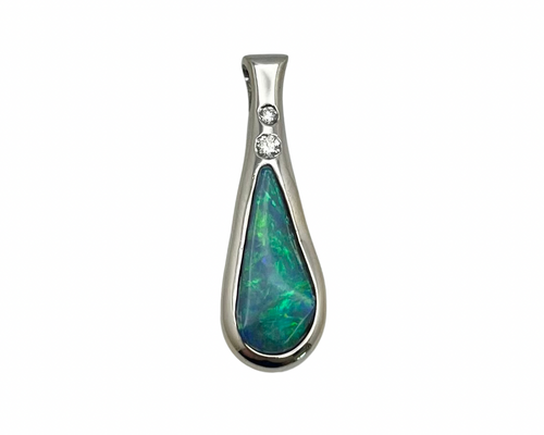 Boulder Opal Bezel Set Pendant with Diamond Accents - White Gold