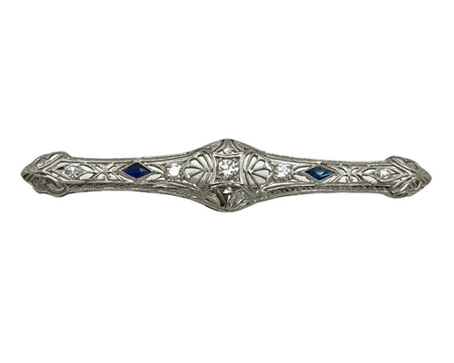 Edwardian Diamond Brooch with Sapphire Accents - Platinum