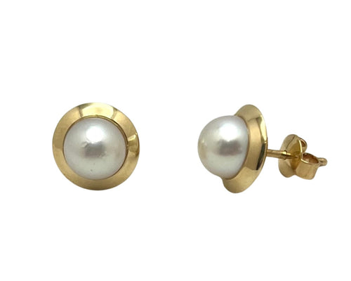 Pearl Earrings with Pave Diamond Accents - Yellow Gold