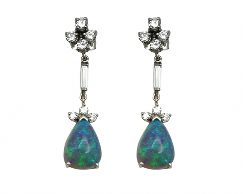 Opal Dangle Earrings w/ Diamonds - White Gold