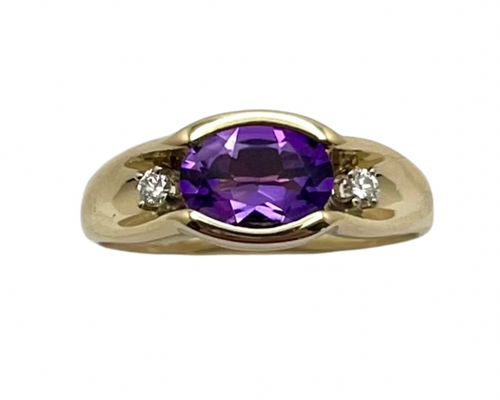 Oval Amethyst Ring with Accent Diamonds - Yellow Gold