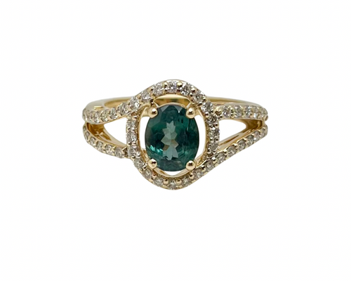 Natural Alexandrite Ring with Diamond Accents - Yellow Gold