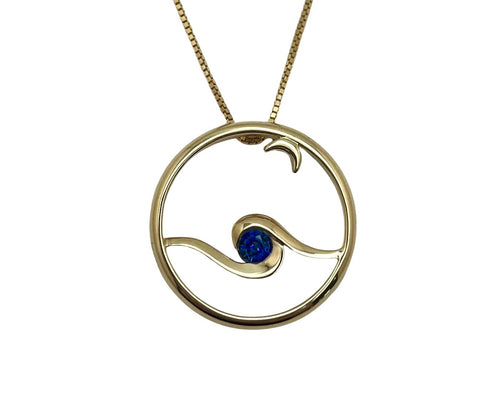 Moon Glow Pendant with Sapphire Center - Yellow Gold