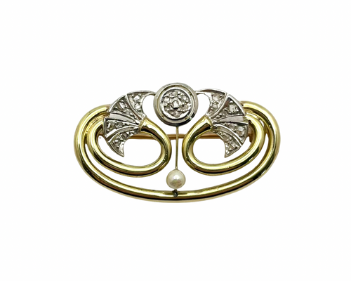 Art Nouveau Pearl Brooch/Pendant - Two Tone